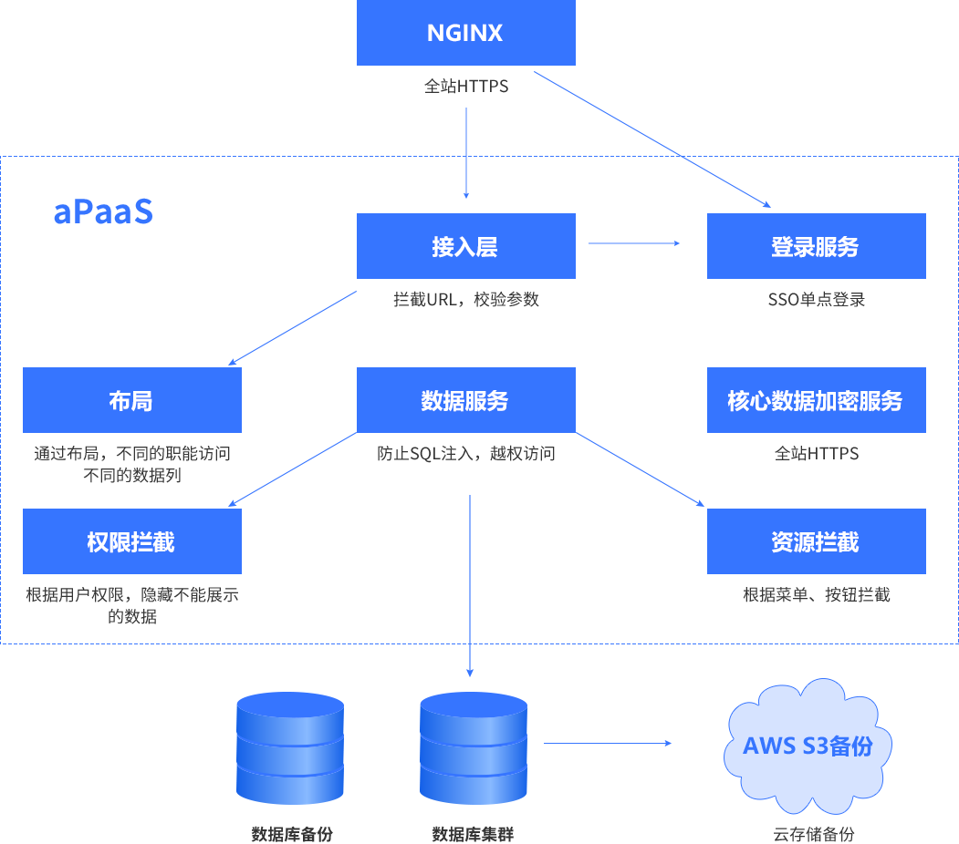 数据安全 、传输安全 、灾备防控 、日志体系 、鉴权机制等全方位安全保障